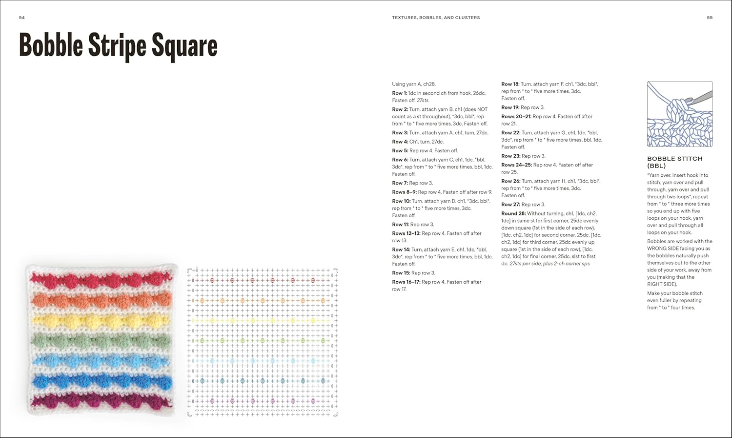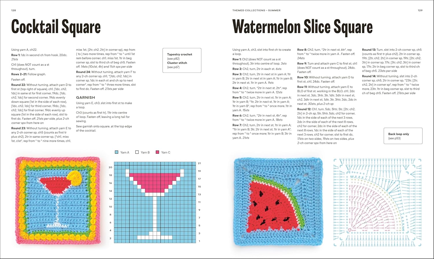 Every square is designed to be worked up at the same size, making it easy to mix and match to create your own unique items, or follow the suggested combinations to make themed blankets, cushions, and more. You can even design your own granny squares using mosaic and bobble stitches, so you can crochet projects that are truly unique to you and your loved ones. And, once you’ve crocheted your squares, you’ll learn how to join and edge them to create a neat finish.