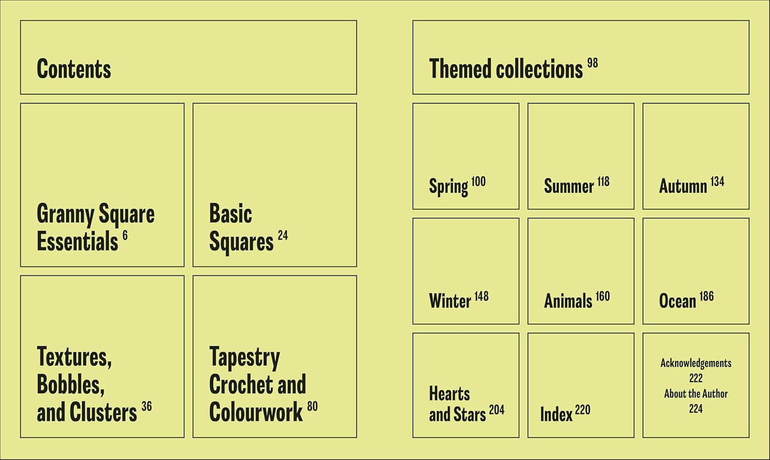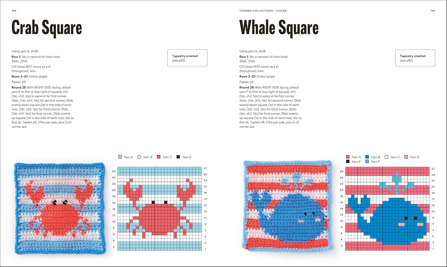 These aren’t your granny’s granny squares. Combining bold colors and playful, eye-catching patterns, this unique crochet collection contains over 150 designs covering a wide range of themes for all ages. The book includes: